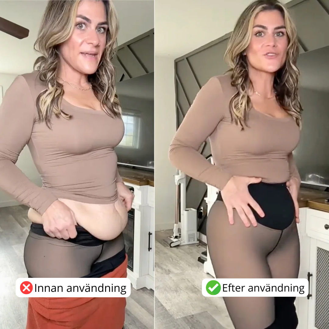 Hög midja + core support: Mjuk formning runt mage och midja för en definierad siluett.